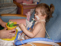 Sorry for not posting sooner, just been trying to spend time with Jenna and getting rest too. So, Jenna did fine through Monday evening and feeds were started again at 5ml Tuesday Morning. They increased her by two every six hours, which she seemed to tolerate through the day. She made it to 20ml this morning and they stopped, per GI request to give her a break for a day or so. Tomorrow morning they will decide if it is ok to increase again and if so, by 2ml every 6 hours until max feeds of 40ml as she tolerates it. She has gone down on her Methadone and Ativan in the last couple of days, which she has tolerated well. She is still on TPN and Lipids, because she is not at max feeds yet. She has not vomited blood since SUnday, just mostly mucous. However, late last night, she had a bowel movement and it had some blood through it. There was not much there, but they still sent it to lab to confirm and it came back positive. She had another bowel movement later in the night, but no blood. At this point, they are just going to watch to see if 1. anything grows from the sample and 2. if she does it again. So far so good. It is possible that she has just had some irritation in her intestine from having the tube pulled back before. Not sure, her blood levels are completely normal at this point. So, we will see. She has been fine through each blood episode, no fever or vital change. Just being Jenna. Yesterday she played great with OT and PT, very happy and active. Today she did well with Speech, she had sort of learned a new sign "all done" when she is finished doing something. This is good! She loves playing with OT, they have a really cool toy bag she loves! She has been doing pressure support trials this week and done well. Today, they decided to try a mist collar trial, she made it two hours. During the trial, she played with OT and then we went on our first wagon ride in almost 3 weeks! She had fun, it was short lived, but she made it. :) She slept after we got back from 3:30 until 9. So, needless to say, it wore her out. But, we have to try to see what she can handle and obviously, she is still trying to get stronger. Hopefully though with sleeping lots, she will go to bed tonight, unlike last night~ Mommy and Daddy were here until after 2am!!! She wanted to play and we just wanted to sleep. So eventually we just left and she was upset, which made Mommy cry, but within minutes, was asleep after we left. Today it was time to change her trach again, it has been two weeks. They gave her Versed to calm her, which made her sleep for 3 hours, go figure, usually it does nothing to her. I was able to participate today, I took it out and the RT put it in. It was an experience, a different feeling, but I am glad I did it. Yesterday I slept in and Daddy came over to with babygirl. Our fav nurse was with Jenna and decided to prompt daddy to do trach care for the first time and not just hold it. So, yay Daddy!!! He is helping every time now which is awesome, we are trying so hard to work as a team! Another step with Jenna they are wanting to do is a CT Angiogram, which takes pictures of her collateral arteries in her lungs, to give a map for Dr. Beekman and Dr. E for her next surgeries to open the arteries. They are trying to determine her next steps and they would like to do this test before she goes home, so it will be done in the next few weeks. Otherwise, she is doing fine. She has fallen asleep now, I was able to hold her today which was great. We snuggled :) Holistic therapy came by and gave me a neck and back massage, which was AWESOME. I am obviously very tense, and this was much needed. So, we are going to try and get some sleep as well. We will keep you updated on her status. Keep praying and thanks to everyone for everything=donations, cards, calls, emails, etc. We are so blessed to have such a wonderful support group! Miss you all and hope to be home sometime soon. Check out pics of babygirl in the last few weeks.